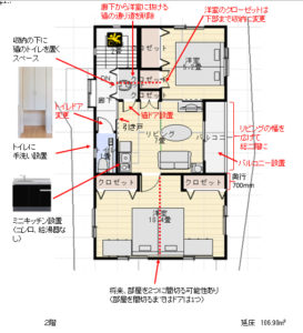 1階も前回より広げてある分、2階もリビングが縦に広がっておりますが、その分バルコニー分を削っています。