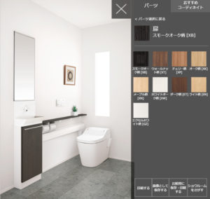 鏡はつきませんが、手洗い器は上図の、「スモークオーク柄」です。